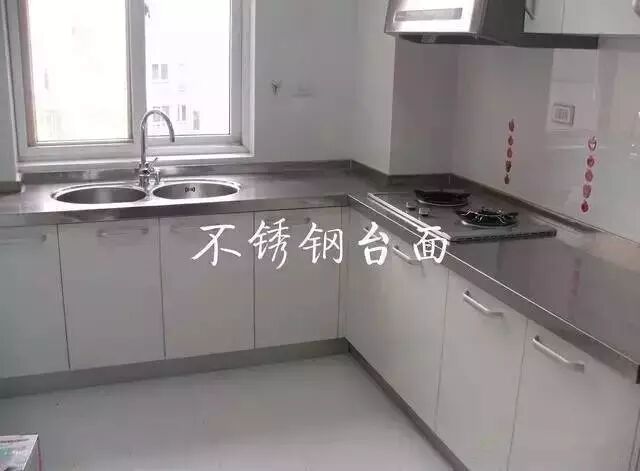 不锈钢台面光洁明亮,各项性能较为优秀。它一般是在高密度防火板表面再加一层薄不锈钢板,但随着不锈钢橱柜在零售市场的日渐衰落,它已不被人看好,市场的占有份额也越来越少了。