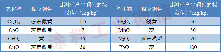 在钛白粉工艺中,尤其是硫酸法钛白粉工艺,大部分的作业是为了除去产品中的杂质,因为杂质严重影响钛白粉的应用性能, 特别是白度。显色金属氧化物杂质在极低的含量下就能影响白度,这些元素有铁、锰、铬、铜等,这些杂质本身就带有颜色,在白色的钛白粉中极易显色,常见的杂质及显色浓度见表。