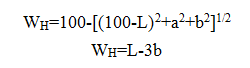 亨特白度在我国比较通用,在国标中也有明确规定,亨特白度用WH表示,计算公式如下: