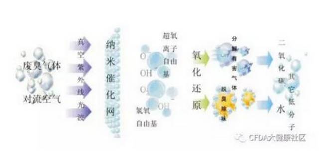 天然植物液经雾化后,能有效吸附空气中的异味分子,并改变异味分子结构型式,进而消除异味,其具体机理如下: