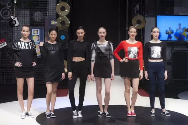 据美国网站 WWD 报道,这场秀同时展示了春夏系列和秋冬系列的产品,如饰有 Taylor Swift 名字或相关字母的短款 T恤、紧身迷你裙和铅笔裤等,大部分都是运动风。在乐队演奏和 Taylor 热门歌曲《Bad Blood》、《Blank Space》等背景音乐中,模特们踏着活泼的台步出场。