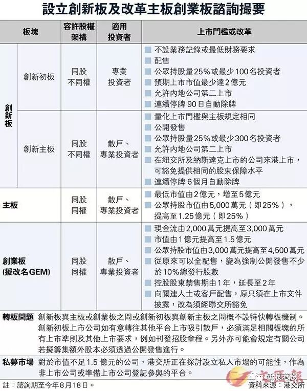 值得一提的是,港交所为确保市场素质,在“创新板”将设“快速除牌”机制,让不符合持续上市条件的公司迅速退市。