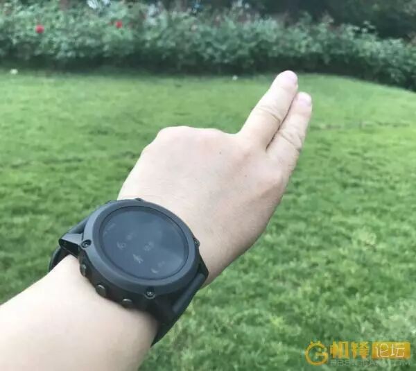 但外观上有些区别,左手正戴时,采用了四颗螺丝对称的布局,比佳明少了右上角的一颗螺丝,配合比佳明更大的表盘,显得更加大方,但也确实显得更大一些。实测此款手表整体大小与佳明的飞耐时3几乎一样。由于屏幕变大加上表圈没有飞耐时3表圈的凸起设计,显得正面看手表有些突兀,但考虑到是智能手表,加入了触控屏,为了触控的方便及易用性灵活性,这种设计也可以理解。