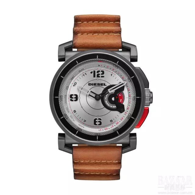 有的女生喜欢配搭大表盘来反衬女生手腕的纤细,Diesel的帅气超级大表盘尺寸一定不能忽视,最新推出的DieselOn Time复合腕表具有大多数智能腕表的配置,突出的50米防水功能,长达6个月的电池续航能力,自动更新时区,更适合喜爱运动和旅行人士,硬朗的不锈钢表盘和棱角分明的设计更有男性化魅力,多层级时间指示能第一时间显示不同区域的时差。