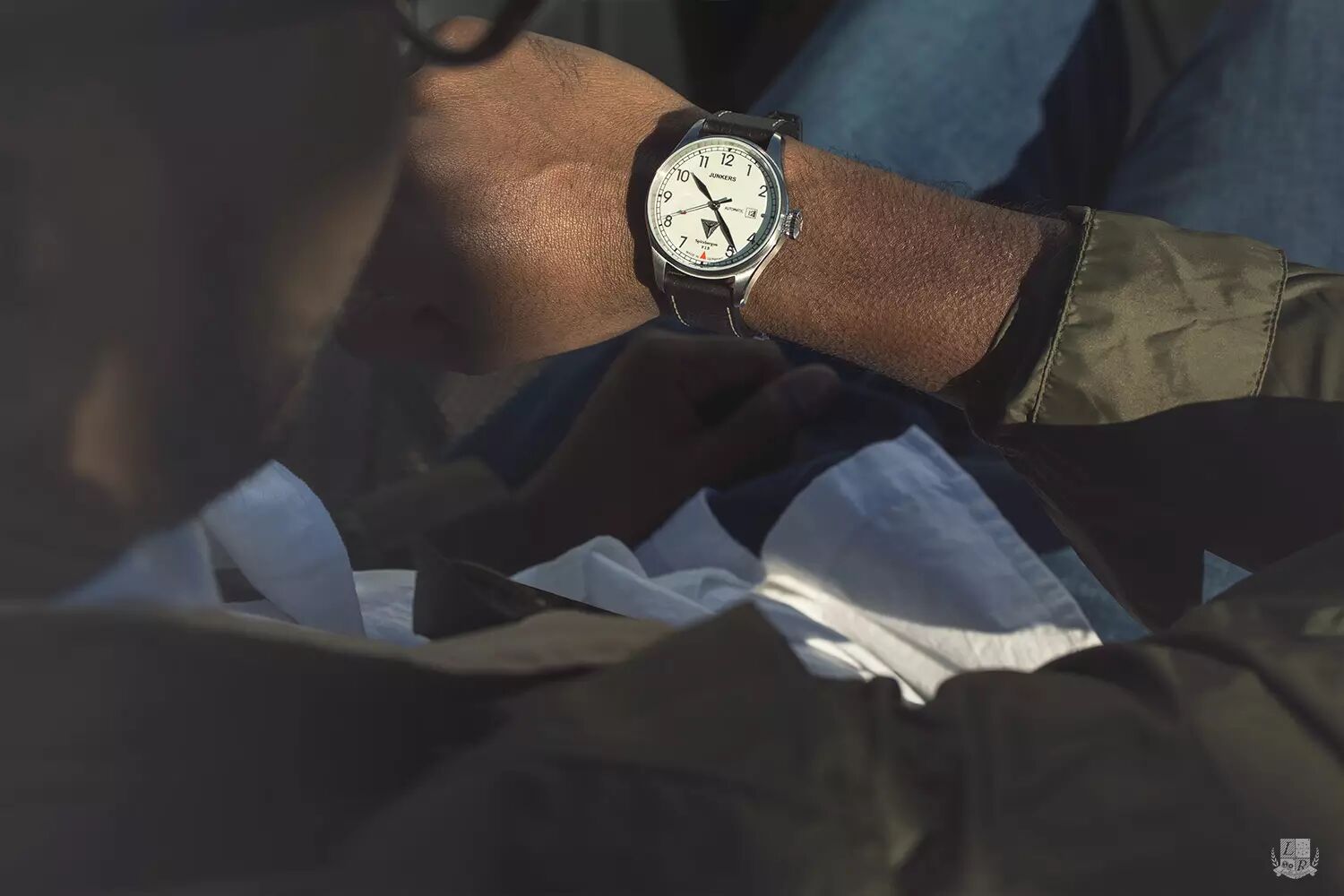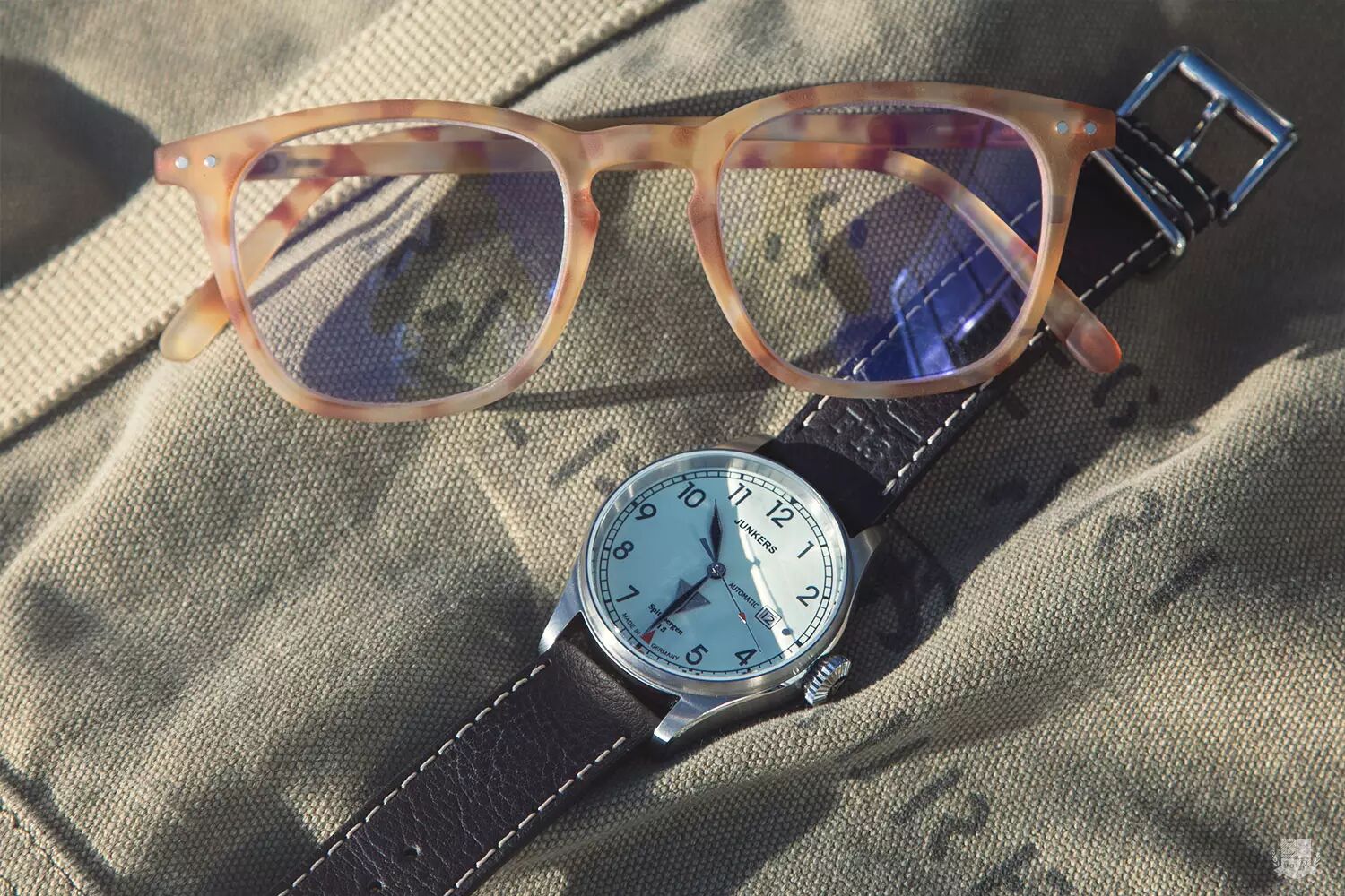 这只腕表为纪念Junkers F13飞机在超低温度下飞越北极的创举而诞生的,正统的飞行员腕表风格,仪表盘轨道刻度,黑色剑型时针、分针搭配红箭头秒针。精钢拉丝表壳以及蓝色夜光表盘,机械自动机芯,透视的表背,淋漓尽致地体现出精湛的腕表制造工艺。在德国采用纯手工缝制的黑色白线牛皮表带,体现了设计者的用心。