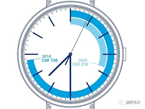 瑞士机械表的入门平均价格从2000年的310瑞士法郎,到2014年时变成730瑞士法郎