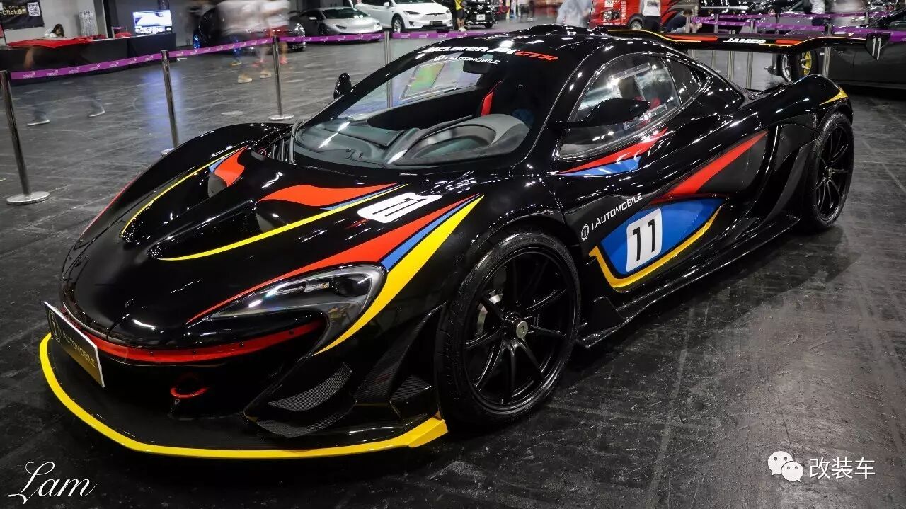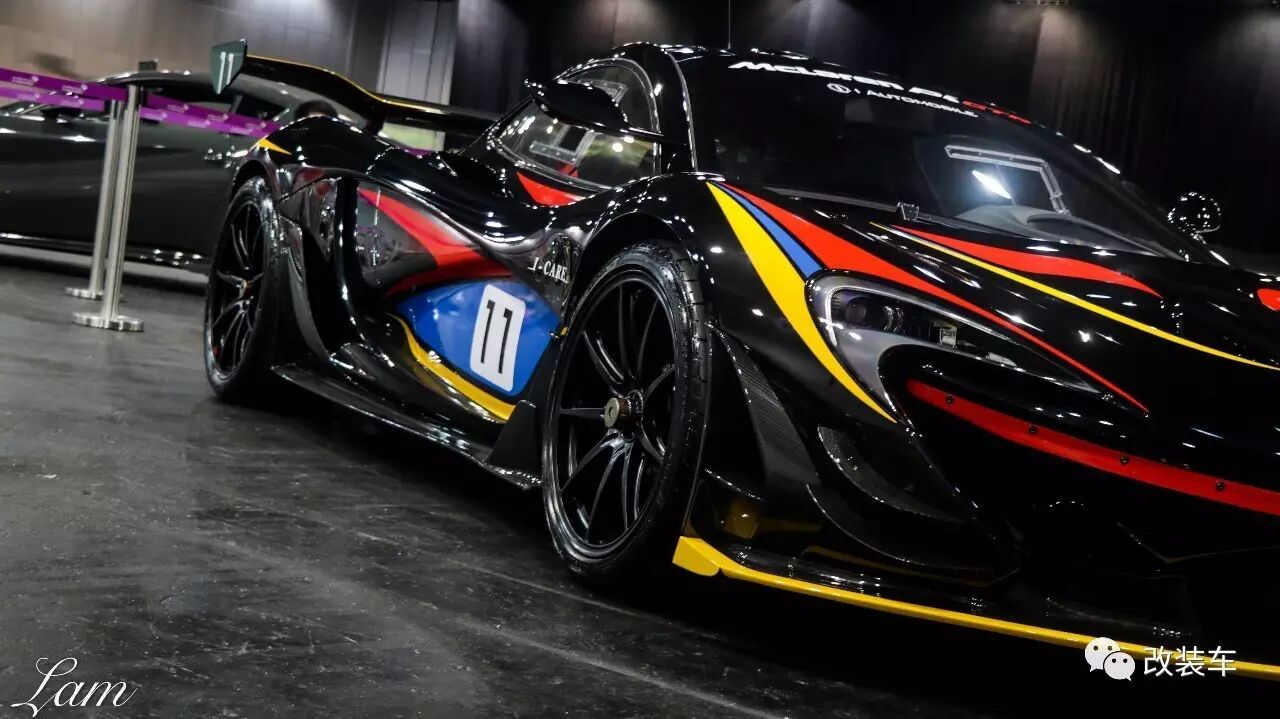现场很少有被栏杆围起来的车子,这辆迈凯伦P1 GTR就是其中之一。我们知道,普通的迈凯伦P1已经很疯狂了,而这辆GTR版本的还是James Hunt特殊款,为了纪念这位F1车手夺冠40周年,车身颜色用的就是他当年头盔的涂装。话说,这么大尾翼,真是霸气了!