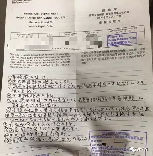 下面,让我们来看一下香港警察对于改装车的罚单。检查的项目可谓是非常细致。"非法改装一般要上法庭,如书面认罪,罚款则以每件改装计算,每件约罚款$600。"其实很多人对香港都有一个误解,这里并不是玩改装车的天堂,只是玩老车的圣地。下面那辆斯巴鲁GC8 Type R最终被拆散了,真是可惜了!