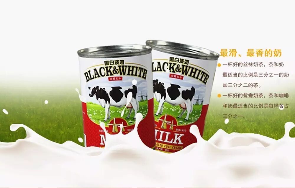 黑白淡奶比一般的淡奶奶脂和奶固体含量更高,质感浓稠,用于冲泡奶茶可使之更醇厚香滑,在香港的茶餐厅最受欢迎。