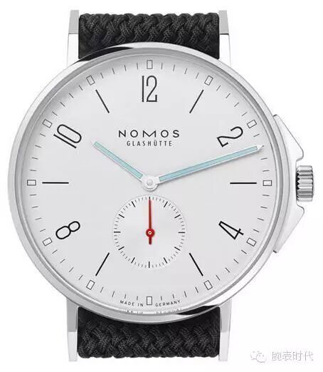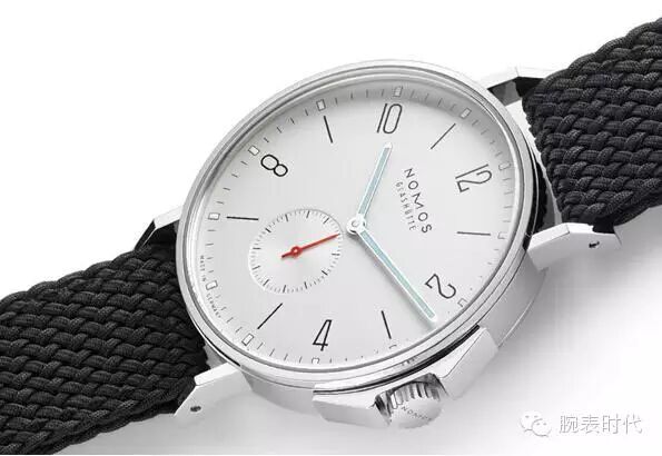 在洒脱与随性的制表风格中,NOMOS有自已的特点,而NOMOS是其中更突出的“简单”品牌,它在外观上通常应用很少的配色,布局简洁,却表达着德国人大气质朴的情怀。红色的小秒针为单调的表盘带来了更多活力,荧光时标具有实用效果的同时还起到了装饰的作用。除基本读时以外没有任何附加功能。自动上链机芯在NOMOS手表的使用中不占多数,但制作工艺同样精美。这枚手表的重量较轻,适合长时间佩戴,表带的织物材质提高的舒适性。