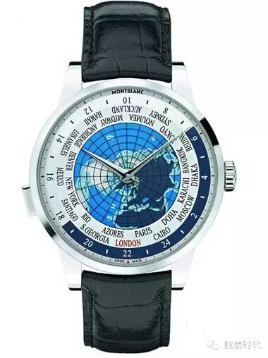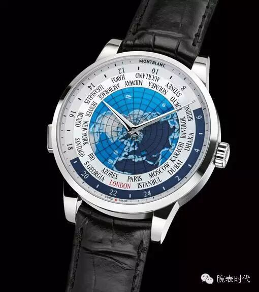 腕表以简洁明了的方式呈现出位于不同时区城市的当地时间,易于读取和调节。,外缘为标注有24个城市名称的圆环以表示不同时区。大陆图案之外的表盘以淡蓝色呈现海洋的颜色。主表盘下方是用以显示昼夜变化的圆盘以及24小时的时区显示,伴随机芯运作旋转。佩戴者在调节时间时,可先通过表盘8点位置的世界时调节按钮,令当地城市名字显示于表盘的6点位置,然后通过表冠将时针和分针调节至当地的正确时间(时针和分针始终与日/夜显示和24时区显示相连)。完成这一步骤后,蓝宝石水晶玻璃表盘上不仅会显示出当地时间,还会同时显示所有24个时区的正确时间。