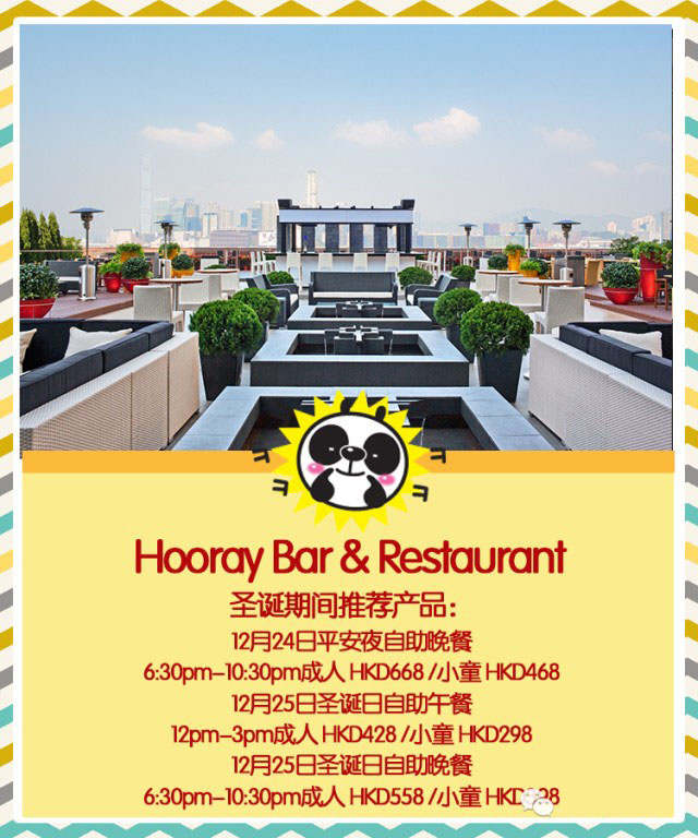 Hooray Bar & Restaurant是全香港拥有最大露天面积的餐厅。拥有高格调的木制桌椅,新鲜美味的海鲜佳肴,俯瞰维港醉人美景的绝佳视角,这里是情侣约会、朋友谈心的绝好去处。