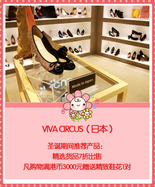 VIVA CIRCUS是来自日本的著名鞋履连锁店,于日本拥有超过50间专柜,包括银座,涩谷,新宿等购物热点。凭借其日本原创设计配合优质材料,款式长青百搭,为亚洲女姓打造合适而细致的款式,因此屡获日本时尚杂志推祟及潮流界热捧。如需了解更多香港美食、玩乐、购物攻略,请关注我们的微信:gzlifes ,回复“F”获取相应攻略!