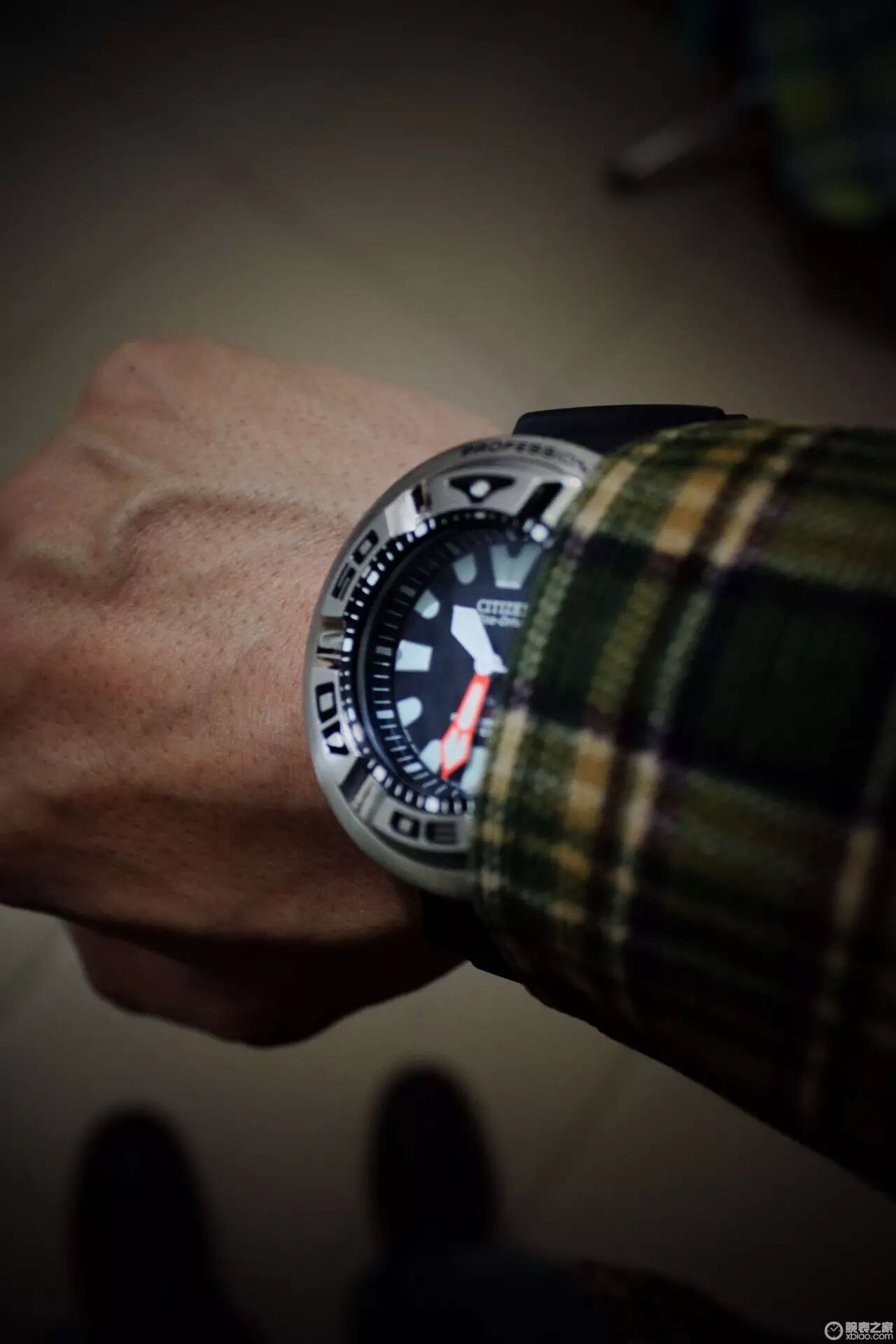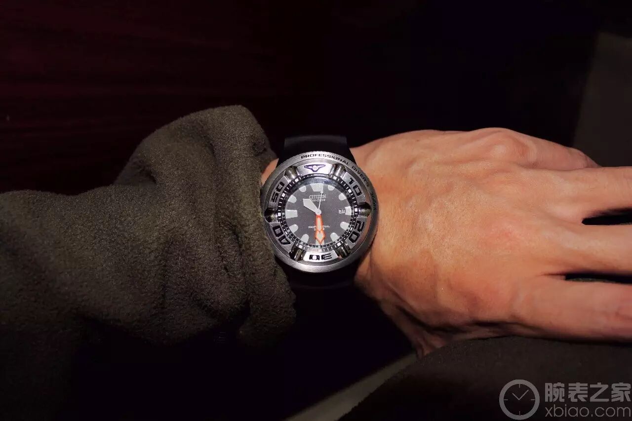 最近闲置,有时间给这个怪物拍几张写真,佩戴了一个月,越看越Valour,有很多表友说它很大、很重,不假,但是没事儿俺能hold住,还想配个钢带,不知道会不会把胳膊拽断。BJ的防水很不错,不知道潜水行不行,夜光的话大家看图就知道了,很刺眼 。