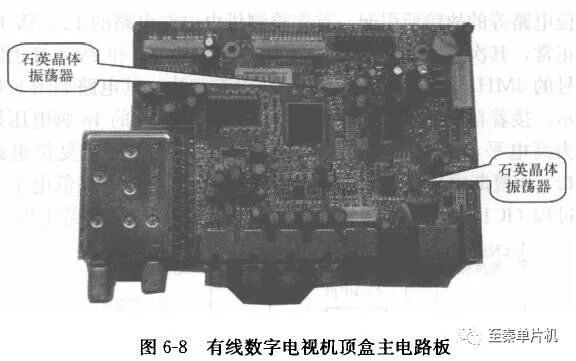 如有线数字电视机顶盒的主电路板上就安装了两个石英晶体振荡器,如图6-8所示。