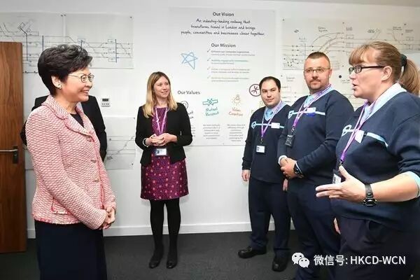 行政长官林郑月娥昨日在英国伦敦参观香港铁路有限公司Crossrail的培训中心。政府新闻处