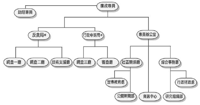 人事管辖和任免上,从廉政专员到各级职员都不属于政府的公务员系统,不受有关公务员条例的约束。廉政专员拥有完全的人事权,各级职员由廉政公署自主招募,以合约的形式雇用,部分人员从警务处等其他政府部门借用。针对廉政公署的投诉由独立的廉政公署投诉委员会监察及复检。该委员会由行政会议成员担任主席。行政长官委任大约40名社会贤达,组成的四个咨询委员会,负责监察廉政公署各个方面的工作。廉政专员定期向行政会议汇报。