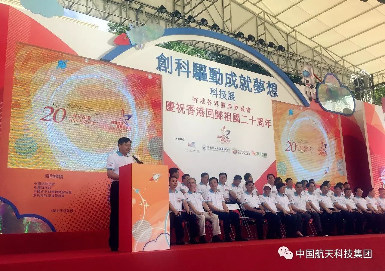 ▲中国航天科技集团公司党组成员、副总经理张建恒在“创科驱动 成就梦想”科技展开幕式上发言