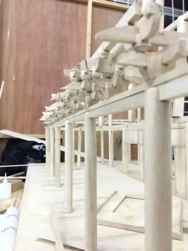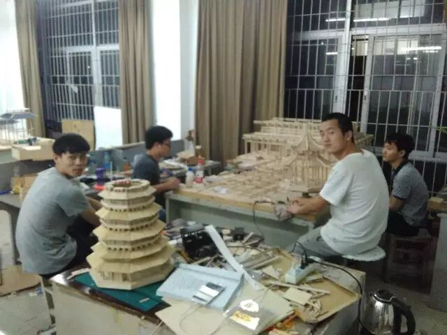 我们几个喜欢的是中国古建筑,所以选择了圣母殿,其实做中国古建筑结构的模型难度还是蛮大的,在这里没有较好的操作台,也没有工具。都是我们自己买木板材料,电钻,电锯等工具。按比例纯手工打造。