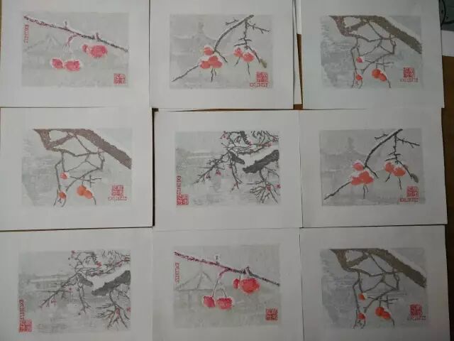 到后面调色,试色,刻板,对版,印制,我们分工配合的都很好,作品出来的效果都还很满意。