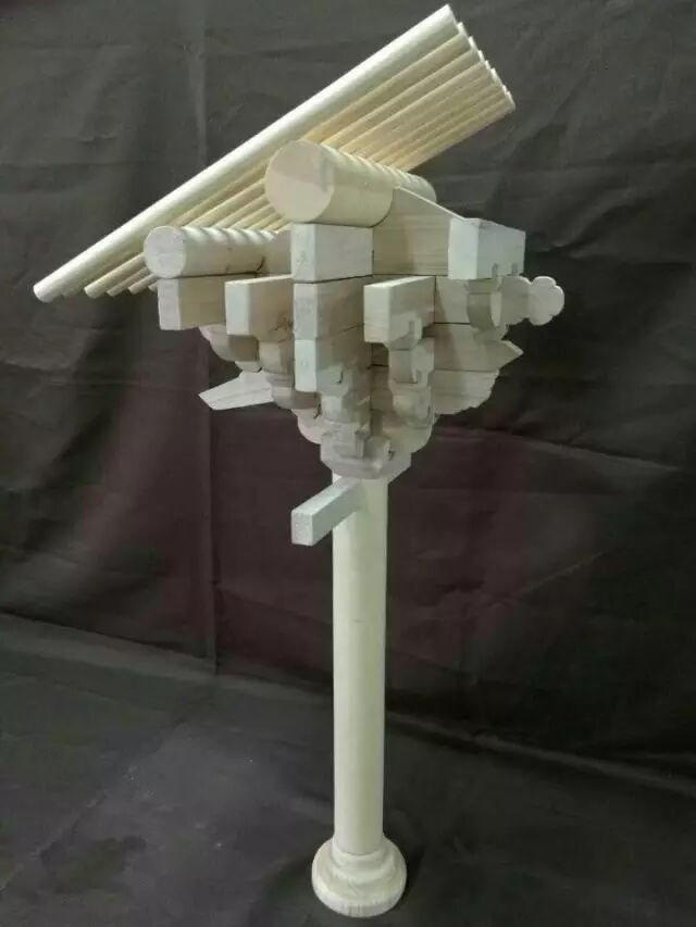 了解斗拱的同学知道,斗拱的造型实在是太漂亮了,好多私家园林和寺庙都是用斗拱做的,因为我们中国的古建筑精华就是斗拱。最后,我们选择圣母殿也是想挑战一下自己,做一件与众不同的作品。