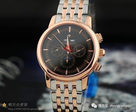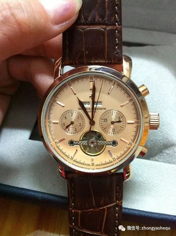 还有的B级货,更过分了。仿的不像不说,正品手表原来有的功能给你去掉,再加上原来没有的功能,仿的似是而非。月相,陀飞轮,乱七八糟的,不管正品表有木有这个功能,想起什么就给你上什么。。。月相呢也不会动,就是给你贴快印刷的纸,上次,吧友发的陀飞轮就是这种货色。其实他那个叫飞轮,所谓的飞轮就是在盘面上挖一个窟窿。露出下面的游丝。然后?就没有然后了。。。上次看一个帖子特搞笑。表盘上一边挖一个洞,然后粘两根管,说是什么双陀飞轮。只要198……