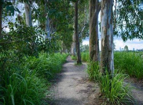 骑车穿梭在两旁赤桉树林立的步道之间,尽情享受扑面而来的清风、香气,还有大自然的声音。赤桉树原产于澳洲,数十年前开始在此种植,散发清新的柠檬香气。停在步道旁边的小木平台,欣赏前方平静如镜的池塘,和反映在池面的青葱山脉与金黄芦苇。
