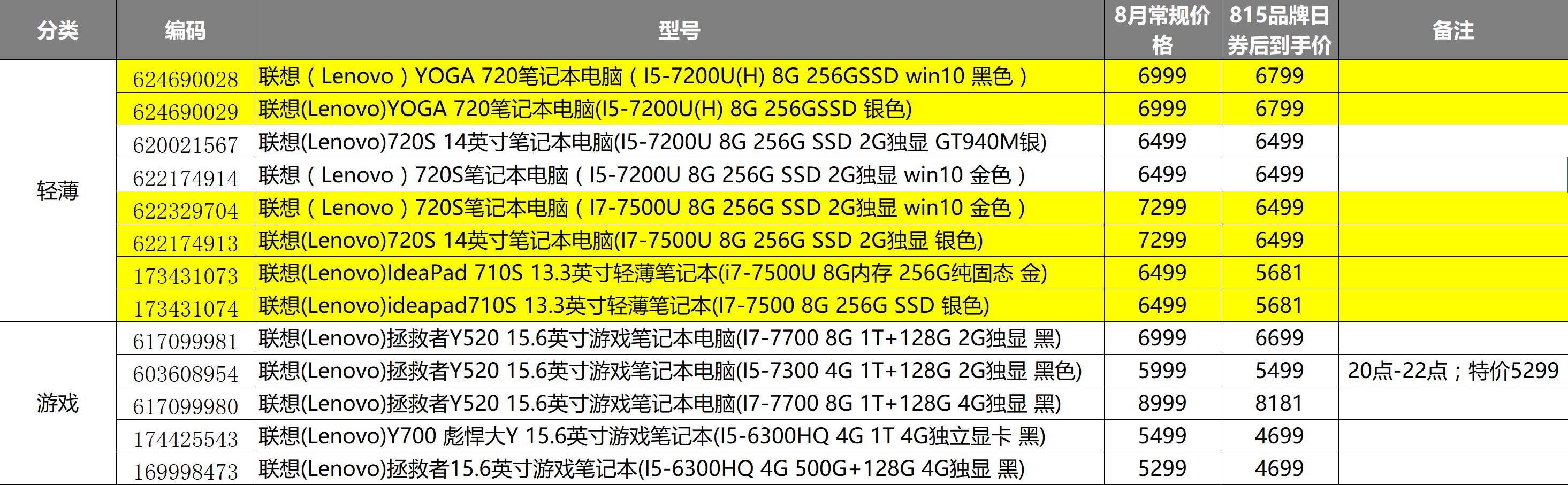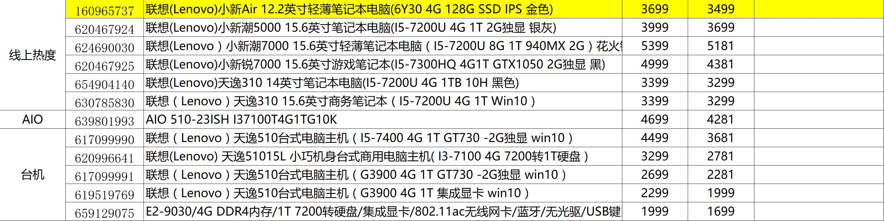 而今天正好是苏宁的联想大牌单品日,我们拿到了联想的单品日价格变动表供大家参考: