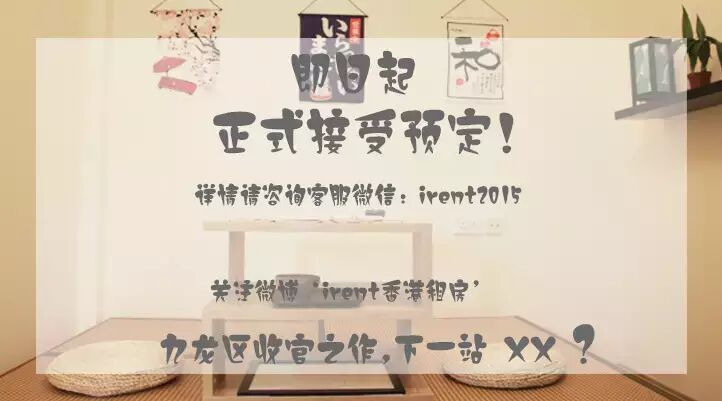 点击上方“iRent”可以获得最新公寓推送!这套房子花了我们很长的时间,很多的心思,今天终于完成,我们知道你也等了很久。可当敲下这些字时依旧怀着忐忑不安的心,就像男女生间示好之前总担心被拒绝,我们想做的好一点儿,再好一点儿。香港小空间里的日式榻榻米iRent极家公寓 荣誉出品以下照片均为实拍香港家居空间很小,所以大多数的我们尽量避免邀请朋友到家中做客,室友间的交流也局限于吃饭,饭毕,各回各房,各做各事。不禁感慨:“自从离开了家,就没有人跟我说话"可就算找到了人,却是没有安静的、放松的角落。一直很想解决这个问题,于是这次的客厅被我们改成了榻榻米。具体说不清ta到底是日系的什么风格,和风还是MUJI都不是关键,重要的是,现在有一个地方,或一人冥想,或三两朋友围坐,外面怎么喧嚣,关上门,Ta是你或你们的私人领地。我们甚至为你想到了很多消遣的方式,比如一个人看书,听歌,弹吉他,看电影;或是同朋友一起吃火锅,桌游,扑克,喝茶,饮酒,累了,甚至可以倒头就睡。藤丝床垫足够柔韧,椰棕内芯足够透气,也许你并未注意的耐磨锦丝包边,都是我们的小心思。如果你来,这会是你的房间。请原谅卧室里没有榻榻米,香港潮气很重,长睡tatami总归是对身体不好。不过我们为你准备了环保的松木无漆床架,以及订制棕榈床垫,书桌椅和储物柜都齐全,希望你会满意。单人房D5600HKD松木无漆 单人床定制棕榈床垫书桌椅子储物柜里面空间刚好,外面阳光正巧。双人房C3400/3600 HKD松木无漆 上下床定制棕榈床垫书桌椅子储物衣柜阳光铺满的房间,如果细心的你看到墙上的相框,里面的内容是小编从日本旅行时带回来的。那是新年时的祝福,预示着今年的好运。单人房B5200HKD松木无漆 单人床定制棕榈床垫书桌椅子储物柜B房间在出草图的时候就已经被预定,妹纸说,看你们之前的房子都很不错,这次肯定也没有问题,直接打款交了定金。对于创业团队来说,这样的信任无疑是对我们莫大的鼓励。双人房A3400/3600HKD松木无漆 单人床定制棕榈床垫书桌椅子储物柜视角最好的A房,可以远眺中环以及全港最高的ICC大厦。两张小方桌被换成一张长条桌,节省一定空间,且又美观不少。你知道做成一件事之前会有很多细节上的麻烦,也许你眼之所见的每件家具,每个摆位,甚至灯胆的亮度,榻榻米的厚度,床腿的高度…都是我们多少次讨论的最终结果。于是才有了小窝现在的样子。你可能还对以下感兴趣:1.步行5分钟到旺角东站/旺角站2.出门左转10步就到的惠康3.满足吃货的餐厅/满足厨子的街市4.马路对面随时取钱的中国银行5.满足shopping的新世纪广场/朗豪坊6.以及你能想到的波鞋街、西洋菜街...我们希望你是这样的:1.经常交友。因为你有个不太普通的交流空间2.注意安全。尽管有保安,以及房门密码+钥匙双保险3.保持卫生。尽管我们有负责清洁4.节约资源。尽管我们有负责部分wifi/水/电5.记得健身。尽管这套在有电梯的20层6.注意保养。因为我们同样希望下一年的客人可以如初见点击下方“阅读原文”查看更多公寓↓↓↓