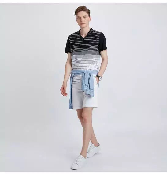 Macy's男士时尚条纹印花撞色T恤V领短袖宽松上衣夏INC2642777834
