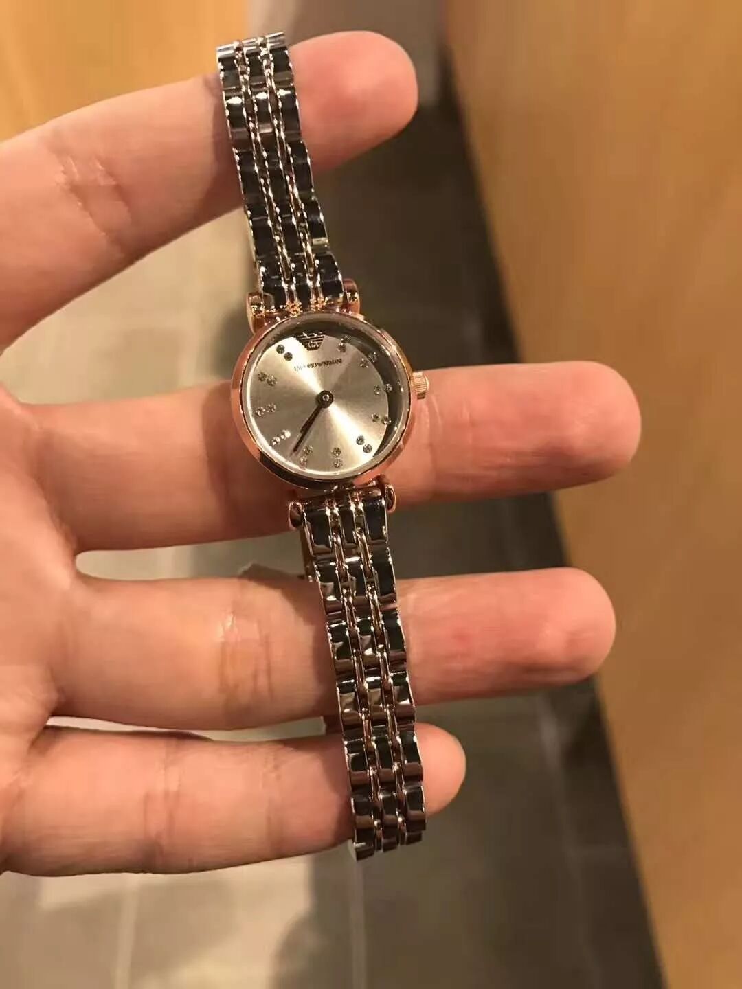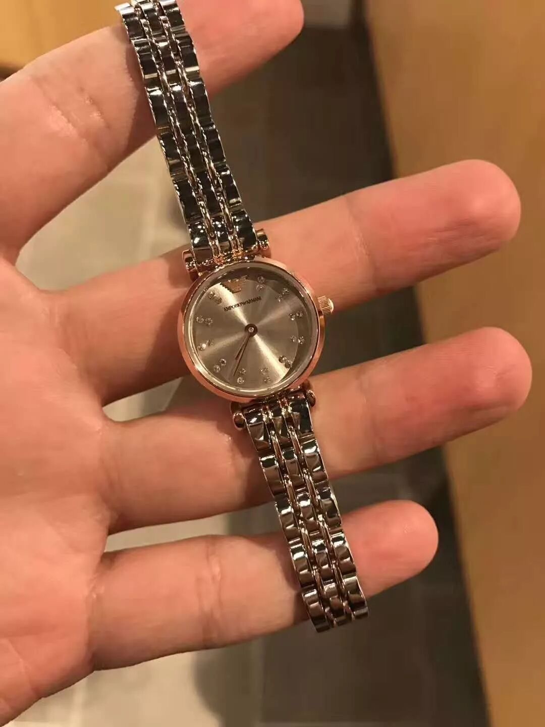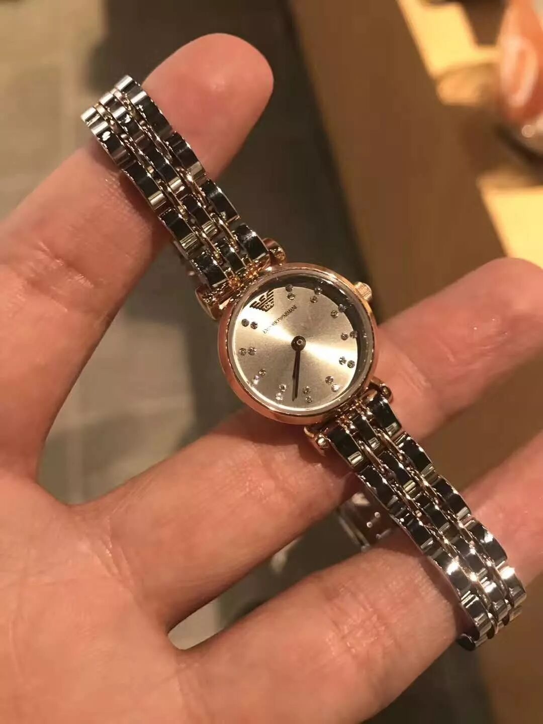 美国代购-Armani新款女表全钢带钻石石英表 !