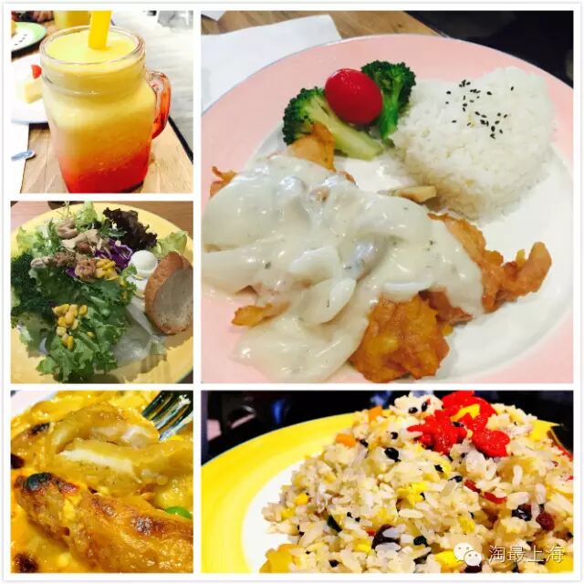 推荐黑松露卡邦汁蘑菇脆鸡饭,炸鸡表皮色泽金黄,薄薄的脆度不会很腻,里面的肉很嫩,堪比专业炸鸡!点了饭加10元就可以得到一杯果汁哦。