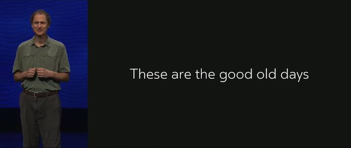 后来呢,Abrash 动情地说到,Dave 居然是对的,很多年后他回过头去,对 Windows NT 的那段工作经历,他印象最深的就是亲密无间的协作氛围 (teamwork),战友之间的满满基情 (camaraderie),和作为一个整体取得的巨大成就 (accomplishment)。每当想到他曾参与设计和实现了一个 OS 的核心部分,而这个 OS 在过去的15年里成为数以亿计的人几乎每天都需要使用的工具,他就觉得这段经历非常的可贵,没有什么比这更符合 “Good old days” 了,而身处局中的人往往没有意识到自己正在参与什么和改变什么。Abrash 说到,他希望来参加 Connect 的各路英雄能意识到,“我们是如此地、令人难以置信地幸运,能够有机会成为虚拟现实行业的开拓者。”