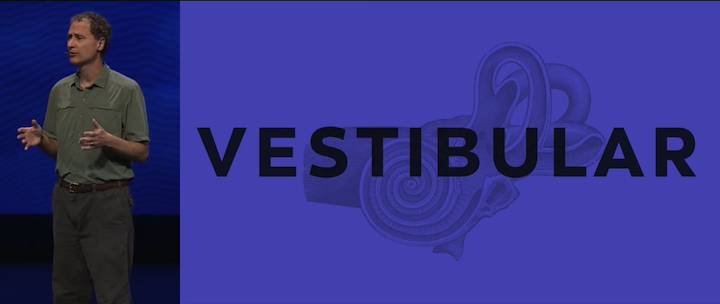 然后是前庭系统 (Vestibular System)。前庭系统相当于我们人体内置的加速传感器 (accelerometer) 和陀螺仪 (gyroscope) 通过感知人体速度和朝向的变化,来协助大脑持续地判断空间位置和维持平衡感。对于 VR 来说前庭具有特殊的重要性,因为前庭感知视觉感知的冲突是 VR 造成不适的关键性因素 (比如你看到了自己正从空中猛冲向地面,但前庭缺乏对应的感知,就会产生不适)。