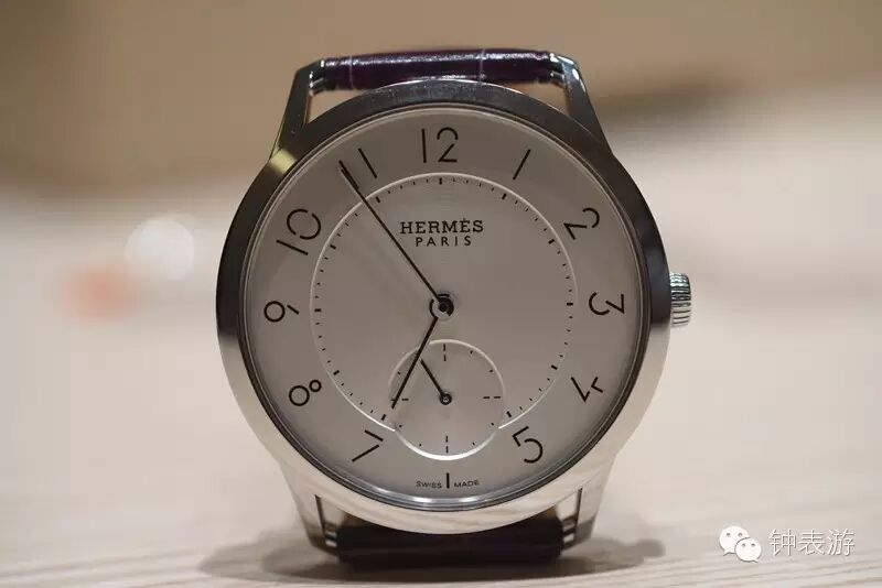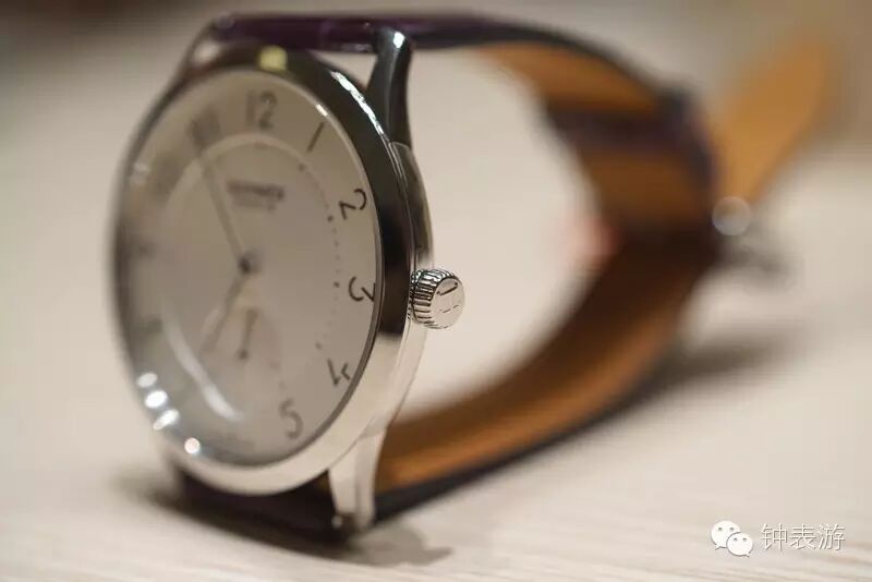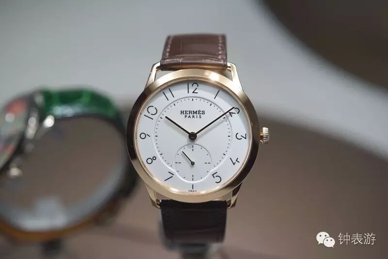 Arceau Slim D’Hermès Email腕表,它直径39.5毫米,小三针布局,整体造型上简洁不失优雅,白色大明火珐琅表盘配上阿拉伯数字时标,更加讨人喜欢。它搭载品牌自产的H1950自动上链机芯,该机芯配以微型摆陀,厚度仅仅2.6毫米,这在爱马仕的表中并不多见。