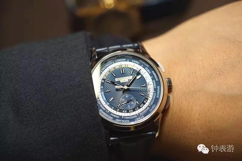 5930世界时间计时腕表是今年百达翡丽新品中的亮点。5930配备全新研发的CH 28-520HU自动上链机芯,并将导柱轮,垂直离合装置的计时码功能与世界时(表盘外圈是24个城市的名称)模块相结合。第一块5930以白金打造。