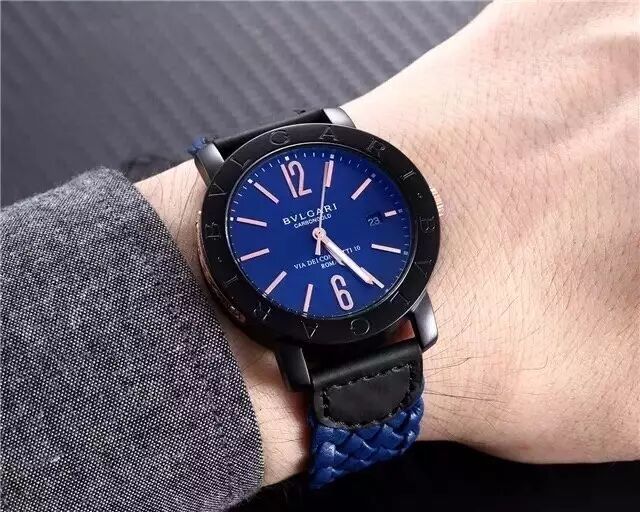 品牌:宝格丽,采用贴手的圆弧形设计,佩戴舒适,同步配有牛皮材质编织表带和尼龙带供选,采用原装机芯!