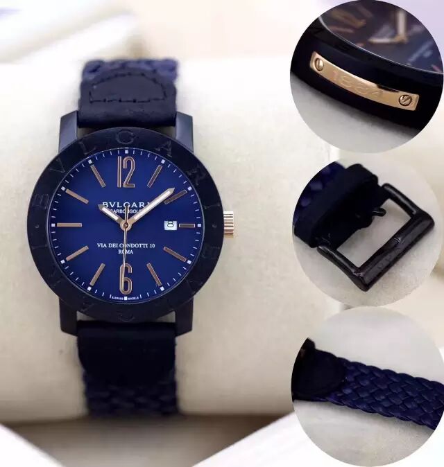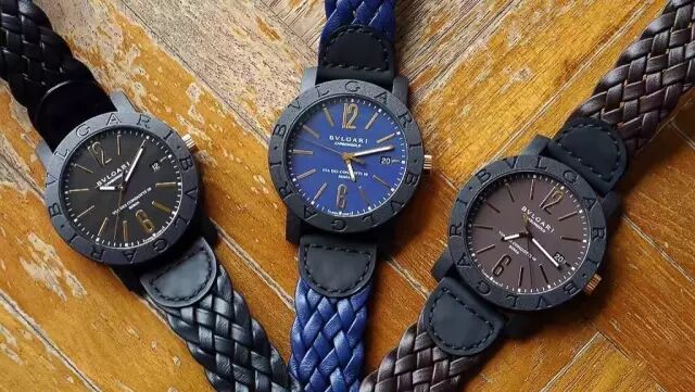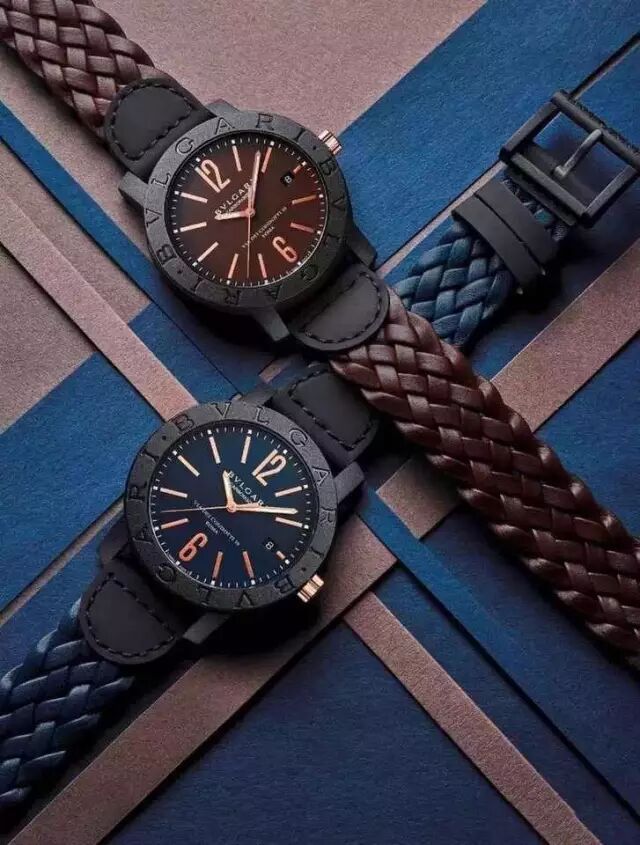 宝格丽BVLGARI,全新腕表引领时代节拍,全新CarbonGold大胆选择现代材质,宝格丽秉承积极探索和颠覆传统的作风,将其精湛的珠宝技艺为腕表领域的创新提供持续的技术支持。腕表不再仅扮演时尚配饰的角色,更成为组成个人风格的重要元素之一。独家推出了一个由麻和皮革编织的腕饰系列。编制绳带搭配在著名的数字表盘腕表上!其摩登的色泽与轻盈的质感相得益彰,佩戴如此独特而卓越的腕表令人倍感舒适!