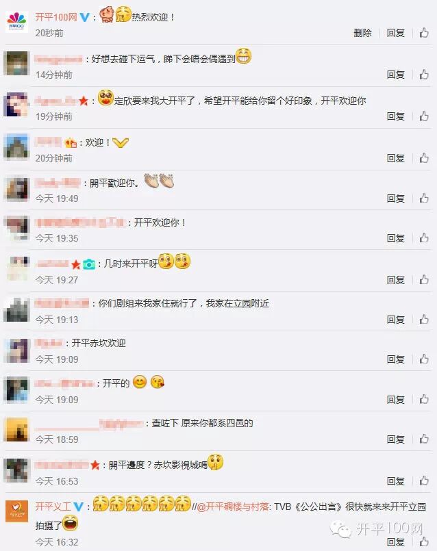 近日,香港演员胡定欣在微博中透露了TVB台庆剧《公公出宫》将来开平拍一个月外景的消息,@开平碉楼与村落小编透露,5五月底开始,整个六月,《公公出宫》就要来开平拍外景了,主要拍摄地为:立园、自力村、马降龙、赤坎影视城。