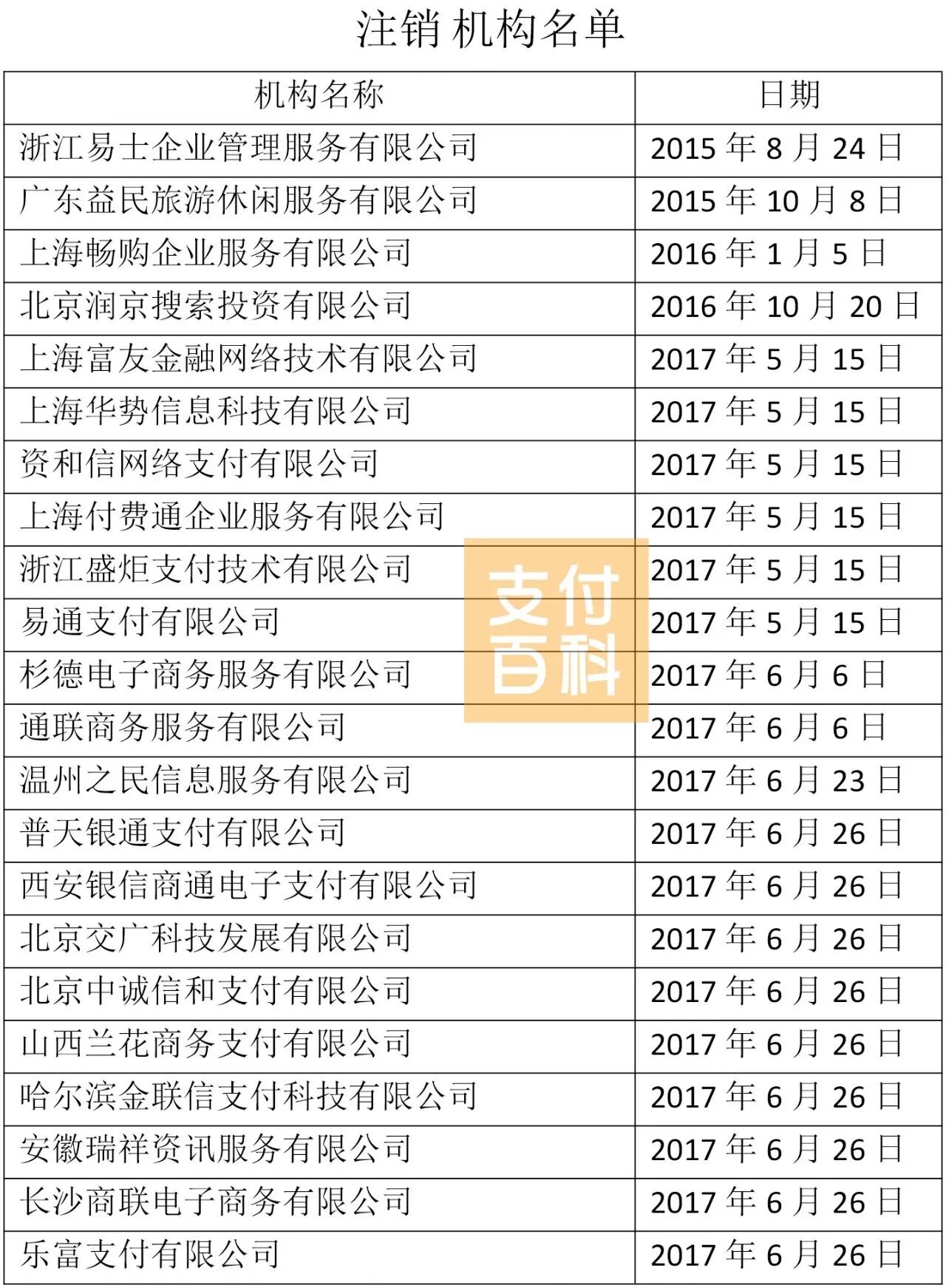 附:20家支付机构注销名单一览