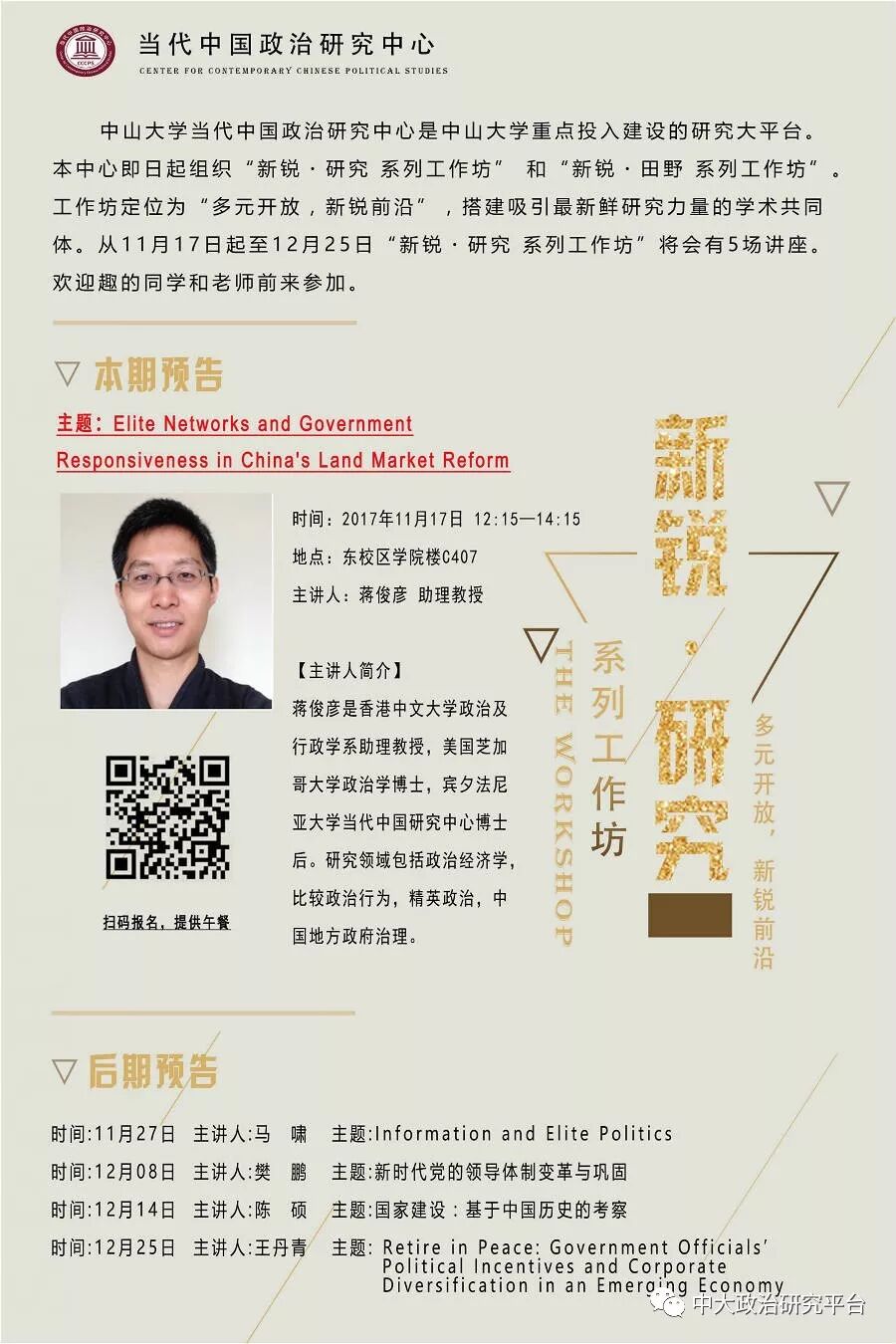 讲座主题:Elite Networks and Government Responsiveness in China's Land Market Reform
