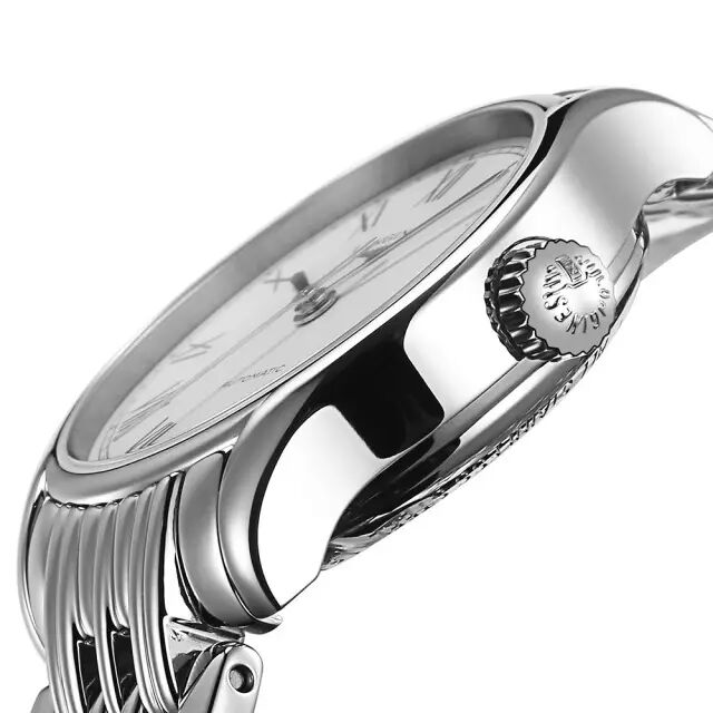 这款腕表表盘尺寸26mm,厚度8mm。拥有着精致纯粹的白色表盘,搭配经典而复古的罗马数字刻度,经典简约的大三针风格。大气的纹路表冠,方便调节时间,不锈钢表带,双向蝴蝶扣。![]()