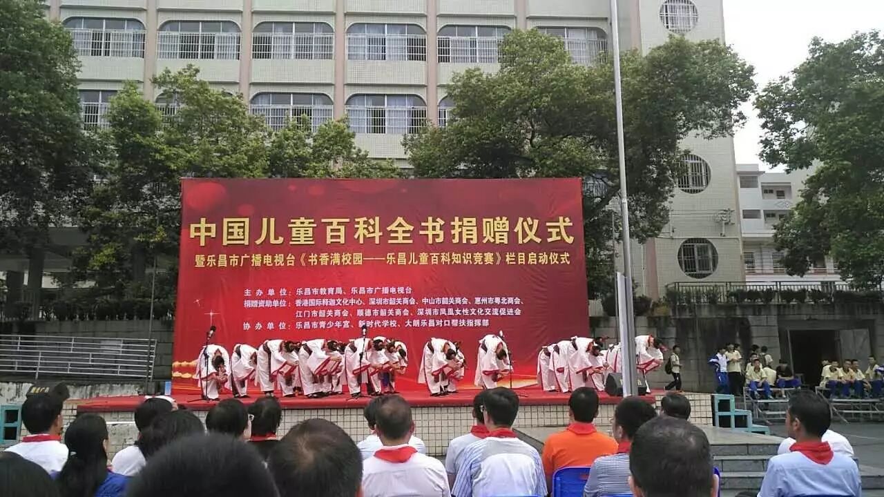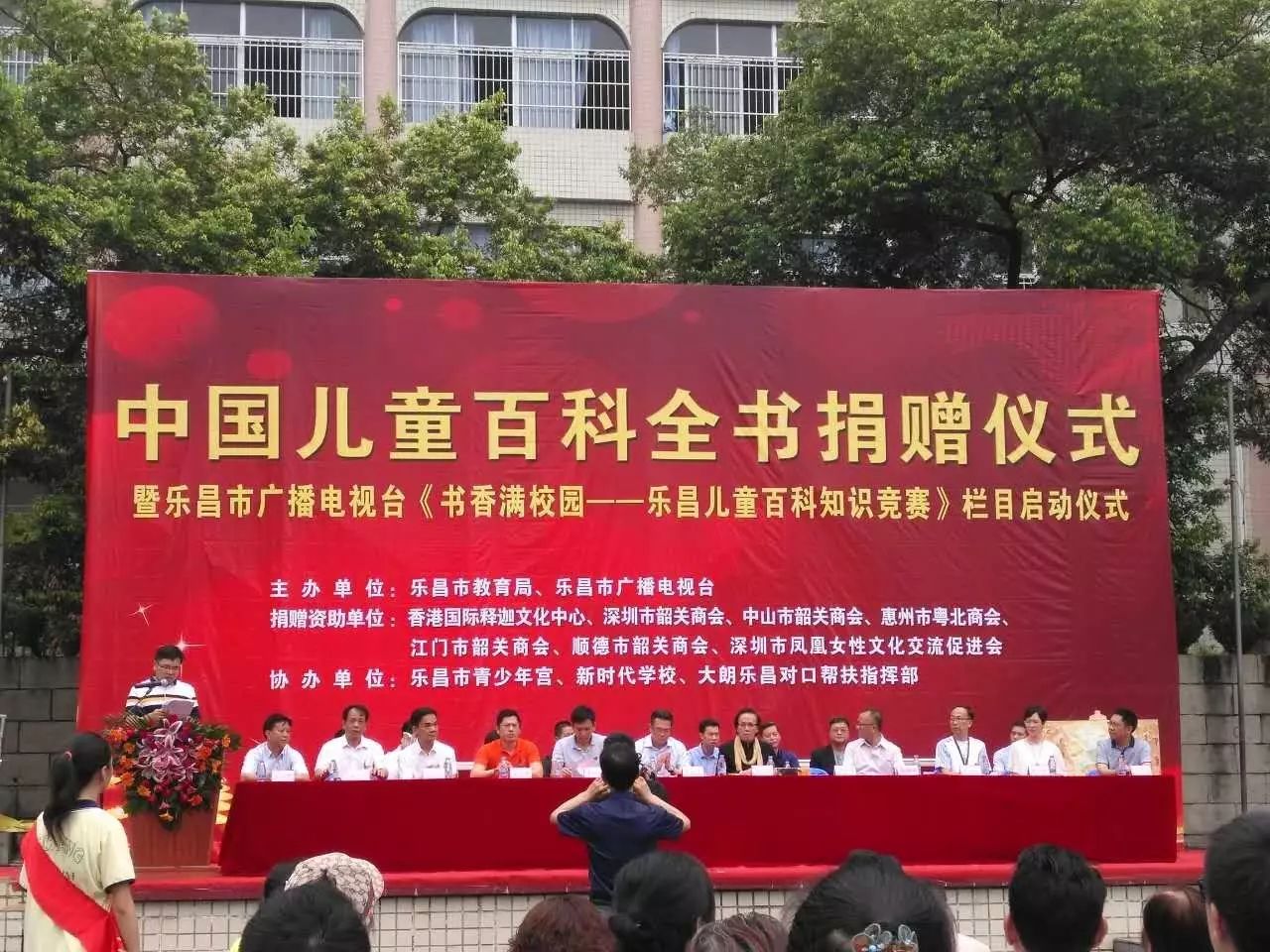 2017年6月2日下午4点香港国际释迦文化中心捐赠《中国儿童百科全书》仪式及乐昌电视台《乐昌儿童百科知识竞赛》栏目启动仪式在乐昌市新时代学校举办。此次活动由乐昌市政府副市长邓洪炜主持!
