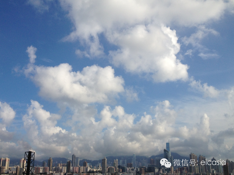 香港浸会大学理学院楼顶的风景,天是蓝的,云是白的