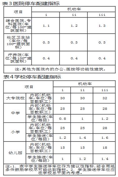 在学校的停车位指标中,在教职工停车配建指标方面,i、ii区大专院校的停车泊位与《省标》持平,iii区上调2个车位/每100百教职工;i、ii区的中学、小学、幼儿园的停车泊位与《省标》持平,iii区上调3个车位/每100百教职工。在学生接送停车位方面,i区的中学、小学以及幼儿园的停车位配建指标保持不变,ii、iii区分别上调0.2个车位/每班、0.4个车位/每班。
