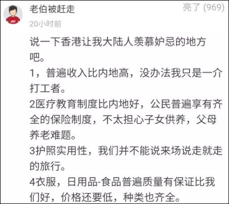 楼主说自己在香港生活了二十多年,妈妈是广州人,也时常回内地。