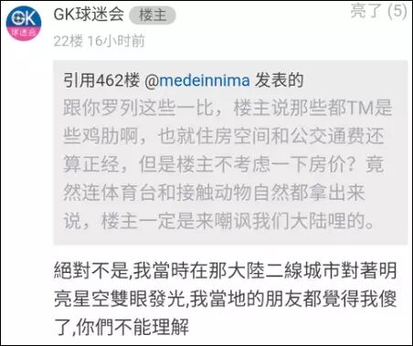 但对于楼主所提的这些好,很多内地网友表示不敢当:让我们帮你找找自豪感。