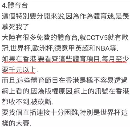 电视频道&体育台:内地大多都是免费的 香港看体育直播每月至少千元