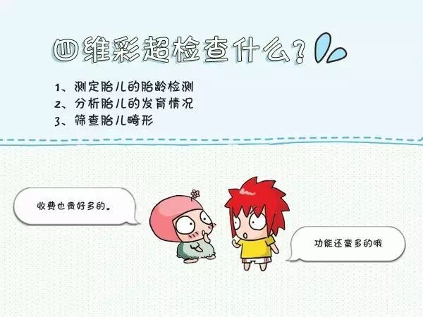 四维彩超日益普及,它可以为准妈妈进行更加准确的检查。由于四维彩超各方面还比较“新”,准妈妈对其还不甚了解。今天我们将用漫画为准妈妈讲解关于四维彩超的那些事。