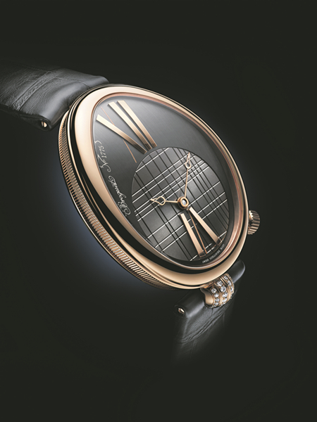 那不勒斯皇后(Reine de Murat)。1810年,卡洛琳娜向宝玑提出了一个不同寻常的订单:一枚可以佩戴在手腕上的大复杂功能机械表——这是文献记载的第一个腕表订单。据宝玑的历史档案所记载,这款腕表为“椭圆形手镯报时腕表”。2002年宝玑根据库存档案中对这块传奇腕表的记载,进行了提炼升华,推出了专为女士打造的那不勒斯皇后系列。